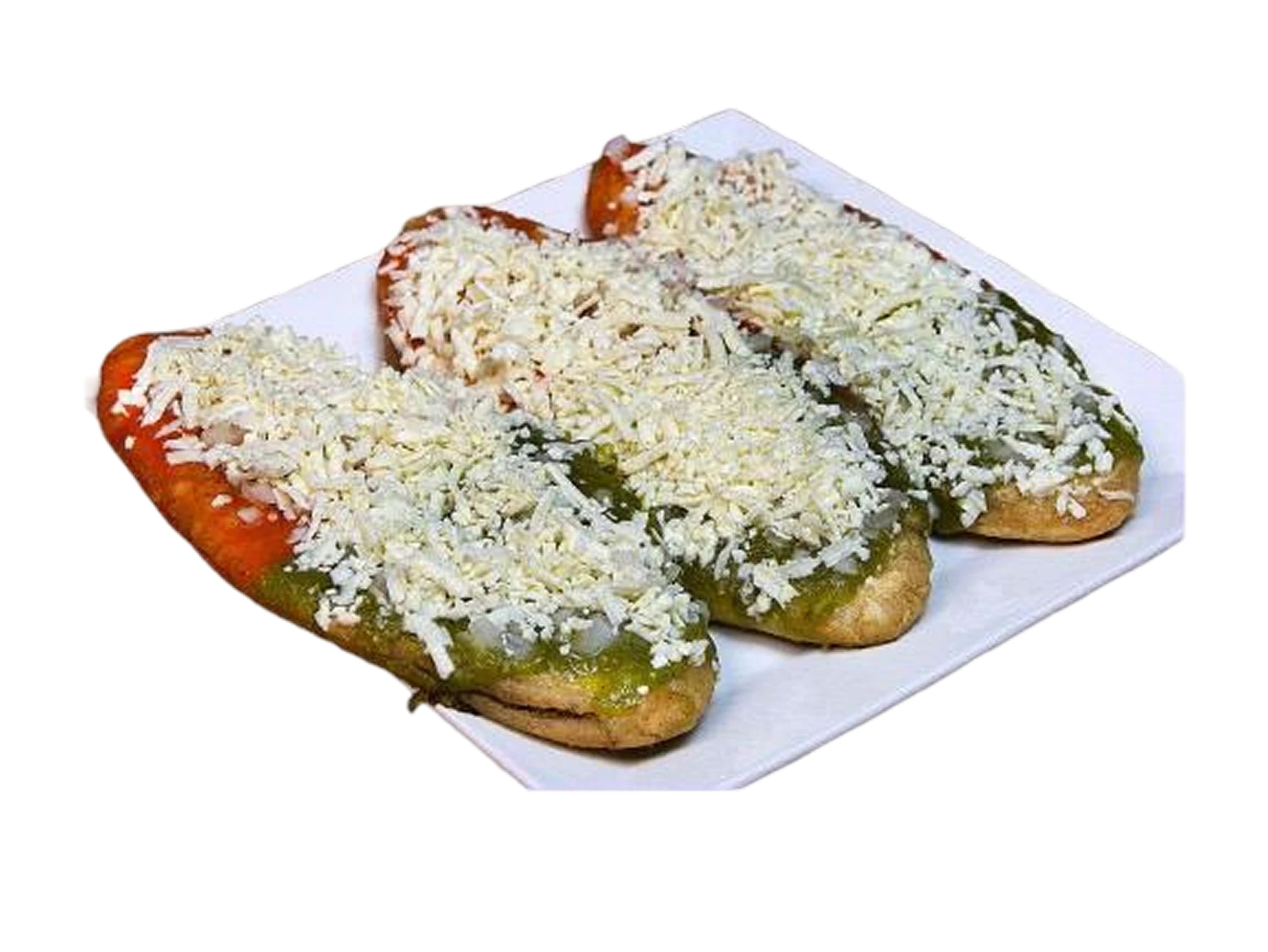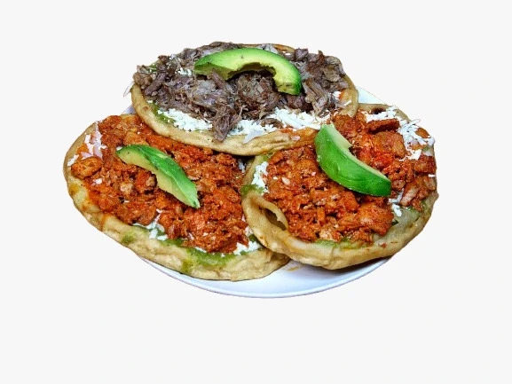 Prepared with refried beans onions, cheese (quesillo), avocado, mayonnaise and rajas or chipotle sauce (optional).