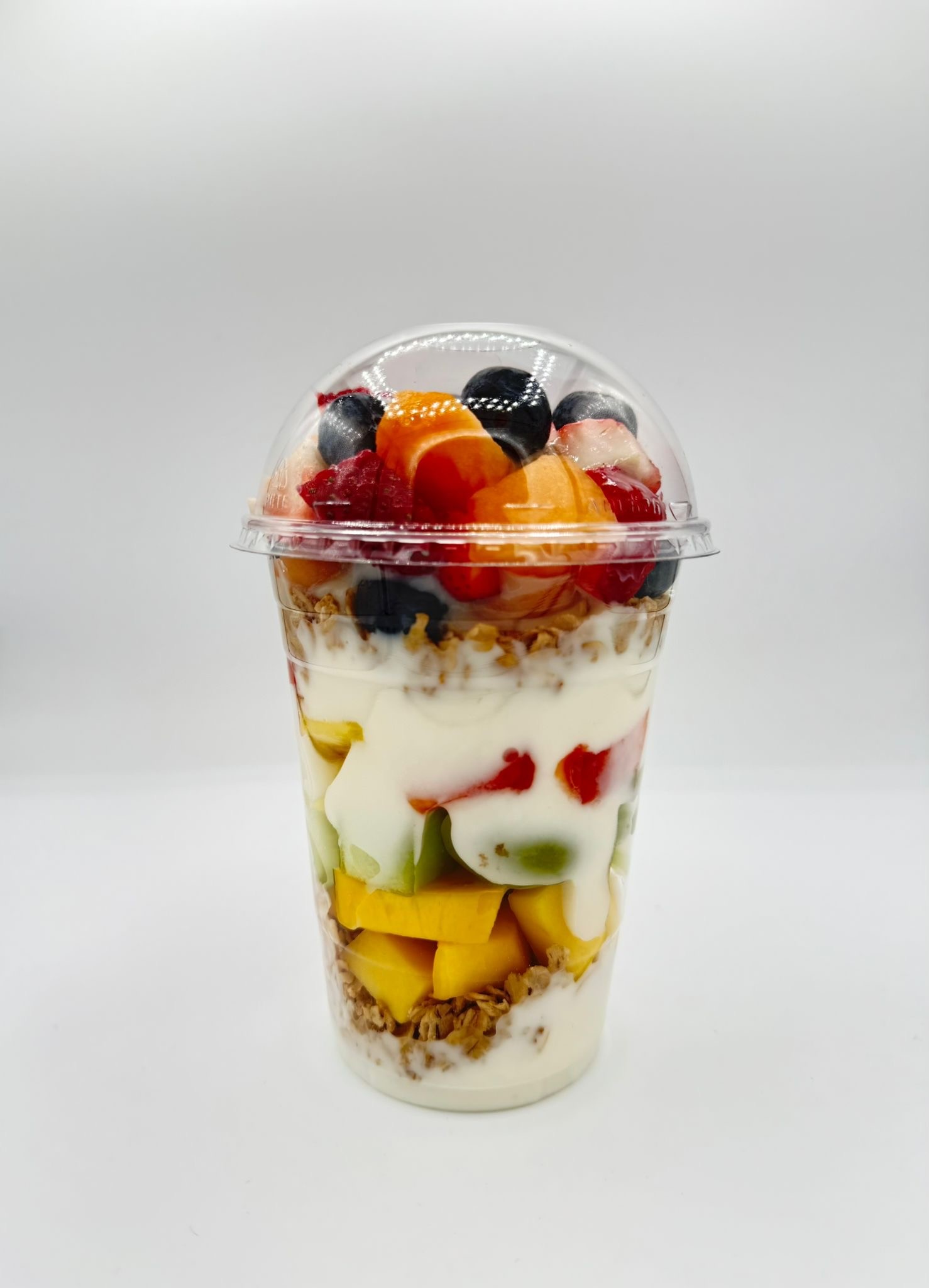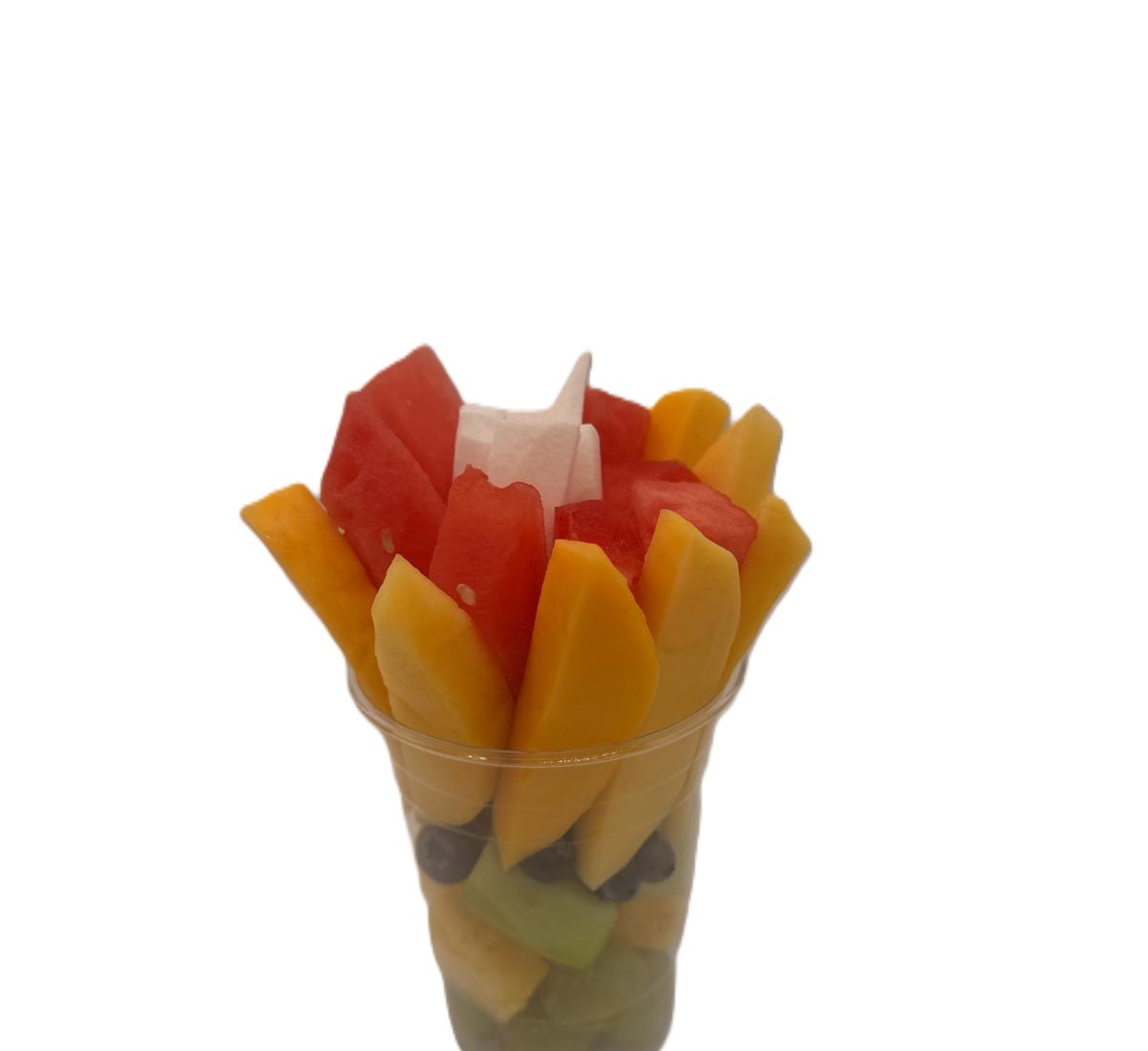 Build your own fruit cup with a selection of mangos, strawberries, blueberries, grapes, bananas, coconut, jicama, honeydew, papaya, cucumber, pineapple, watermelon or cantaloupe.