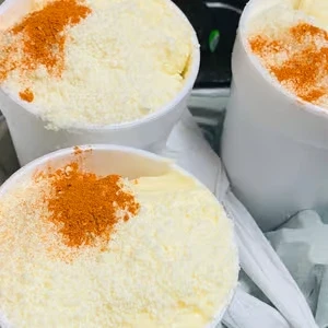Corn in a cup. Comes with mayonnaise, cotija cheese and cayenne pepper powder.
