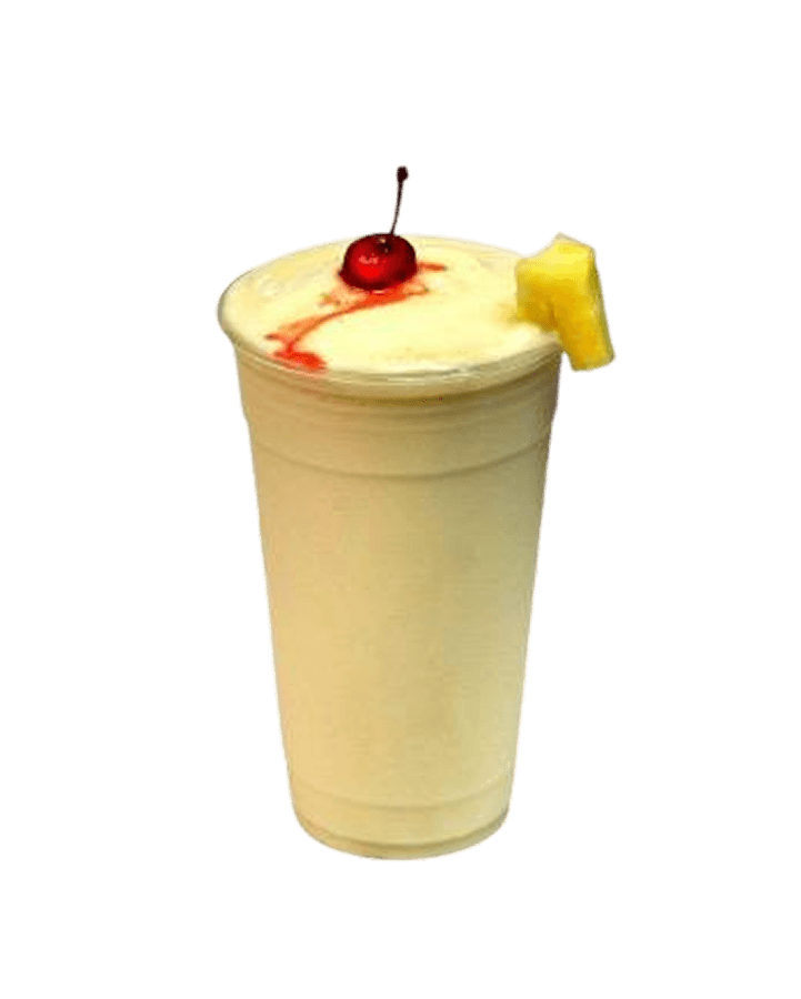 A refreshing blend of coconut cream and fresh pineapple mixed with ice and topped maraschino cherry.