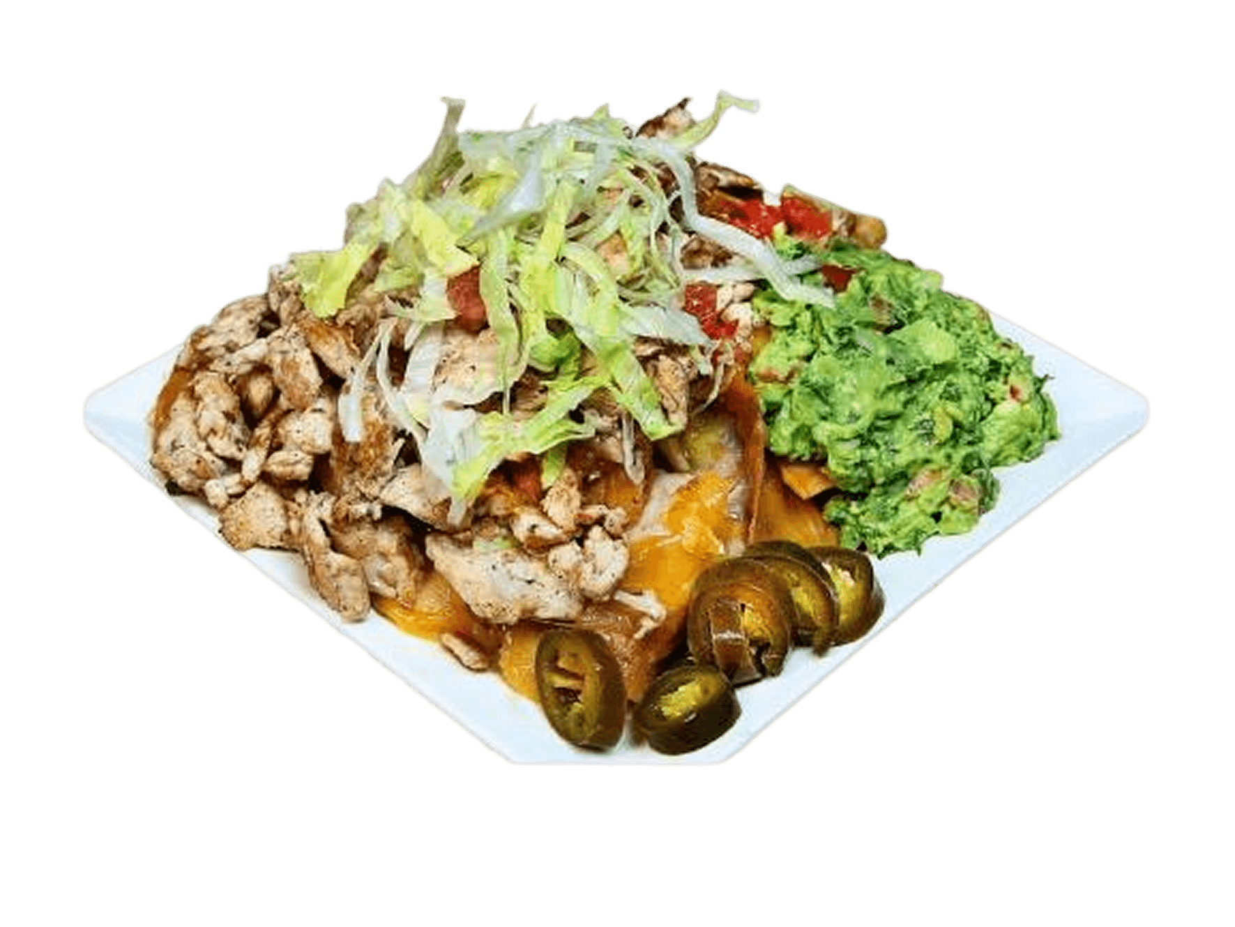 Prepared with rice, Mozzarella cheese, pico de gallo, avocado and sour cream.