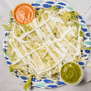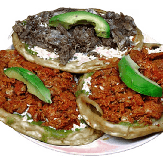 Prepared with refried beans onions, cheese (quesillo), avocado, mayonnaise and rajas or chipotle sauce (optional).