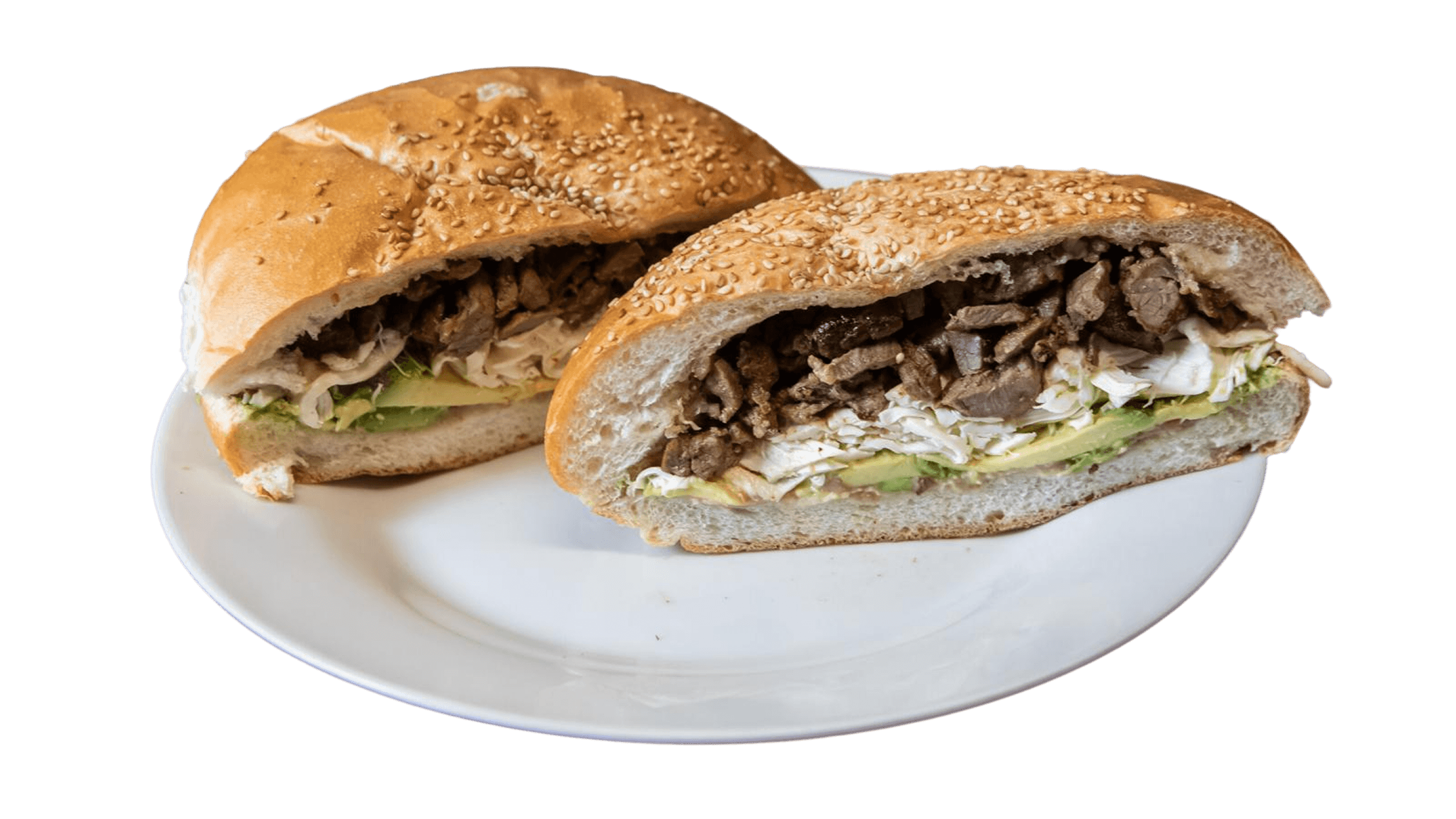 Prepared with refried beans, cheese (quesillo), tomatoes, onions, avocado, mayonnaise, raja or chipotle sauce (optional) served on a toasted telera bread.